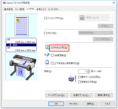 原稿をカット紙の中央に配置して印刷したいときや、ロール紙の幅に対して左右の余白を均等にとって印刷したいときには、[中央に印刷]機能を使用します。