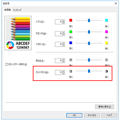 [色設定]ダイアログボックスが表示されます。コントラストを調整する