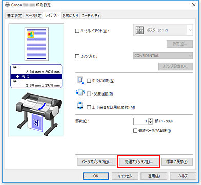 2. [レイアウト]シートの[処理オプション...]をクリックする