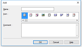In Name, enter the name of the favorite. Set the Icon and Comment fields as necessary, and then click OK.