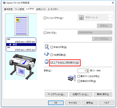 原稿の上下の余白分のロール紙を節約する