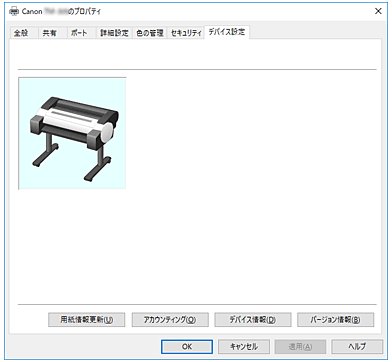 プリンターのプロパティのウィンドウにあるシートの多くは、Windowsによって管理されています。ただし、[デバイス設定]シートはプリンターの構成に関連する設定を行うシートで、プリンタードライバーの一部です。