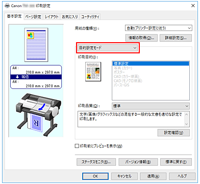 一般的によく使う印刷設定が印刷目的としてあらかじめ登録されています。印刷目的を使用して印刷すると、原稿に合った設定で印刷をすることができます。