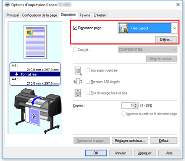 Dans l'onglet Disposition, cochez la case Mise en page, puis, dans le menu déroulant, sélectionnez Free Layout.