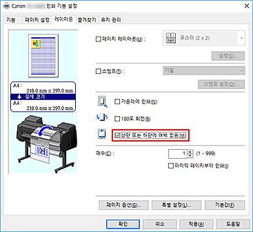 롤 용지에 인쇄하는 경우 상단 및 하단 여백을 줄여 용지를 절약할 수 있습니다.