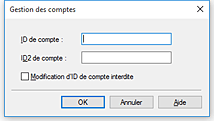 Si cette option est définie, les utilisateurs ne disposant pas des droits d'administrateur ne peuvent pas définir ID de compte et ID2 de compte.