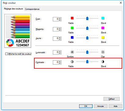 La boîte de dialogue Régl. couleur... s'affiche.Réglez le contraste