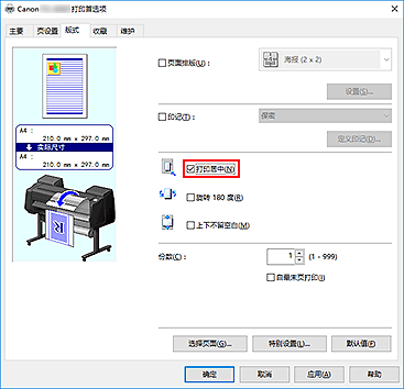 如果希望将源文档置于单页纸中央进行打印,或者相对于卷纸宽度左右等边距打印,请使用打印居中功能。