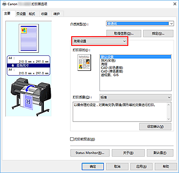 一般常用的打印设置已预先注册为打印用途。 通过使用打印用途进行打印,可以使用适合文档的设置进行打印。