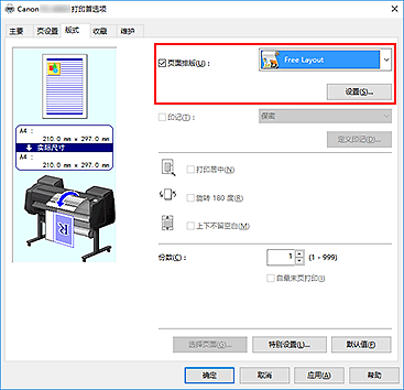 版式选项卡上,选中页面排版复选框,然后从下拉菜单中选择Free Layout