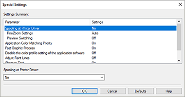 Si apre la finestra di dialogo Impost. speciali (Special Settings).