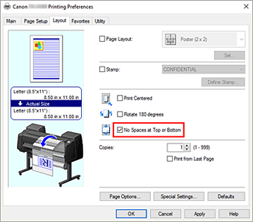 Для параметра Ширина рулона бумаги (Roll Paper Width) выберите ширину рулона бумаги, загруженного в принтер.
