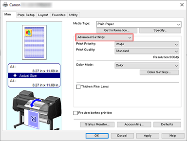 Abra la ventana de configuración del controlador de impresora