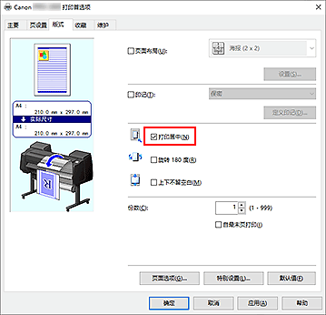 如果希望将源文档置于单页纸中央进行打印,或者相对于卷纸宽度左右等边距打印,请使用打印居中功能。