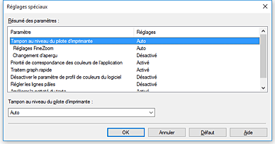 La boîte de dialogue Réglages spéciaux s'affiche.
