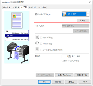 [レイアウト]シートの[ページレイアウト]にチェックマークを付け、プルダウンメニューから、[フリーレイアウト]を選びます。