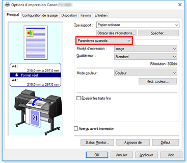 Dans Mode couleur, sélectionnez Couleur, puis cliquez sur Régl. couleur.