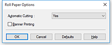 Fare clic su Opzioni rotoli carta (Roll Paper Options) per visualizzare la finestra di dialogo Opzioni rotoli carta (Roll Paper Options).