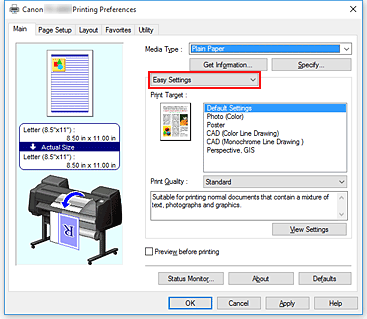Dal menu a discesa, selezionare Impostazioni semplificate (Easy Settings).