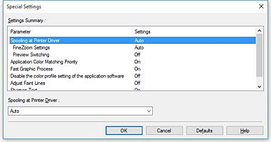 Si apre la finestra di dialogo Impost. speciali (Special Settings).