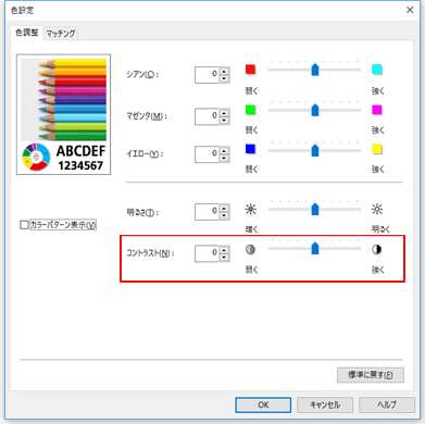 [色設定]ダイアログボックスが表示されます。コントラストを調整