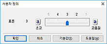 중요- 용지 종류(Media Type)에서 자동(프린터 설정 사용)(Auto (Use Printer Settings))을 선택하면 사용자 정의(Custom)를 선택할 수 없습니다.