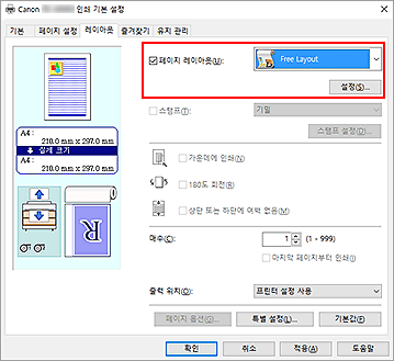 참고- 여러 어플리케이션 소프트웨어의 문서를 한 페이지에 배치하려면 Canon imagePROGRAF Free Layout 창을 닫지 말고 1~3단계를 반복하십시오.