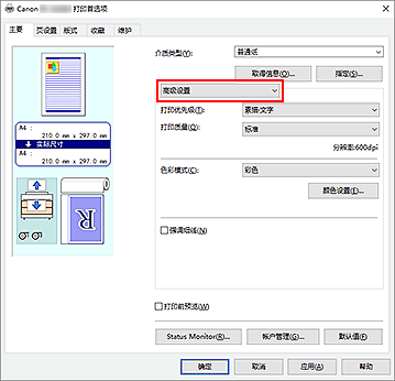 也可以直接输入与滑块关联的数值。 输入从-50到50范围内的数值。 当前设置显示在打印机驱动程序左侧的设置预览中。