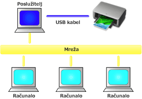Ako računala koristite u mrežnom okruženju, dokumente možete ispisivati s više računala koja dijele jedan pisač.