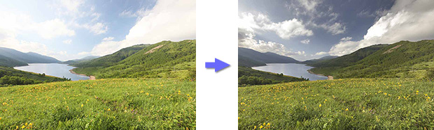 Um Szenen mit einem größeren Dynamikbereich zu drucken, verwenden Sie RAW-Bilder, die mit der Funktion Lichtstärke-Tonpriorität (Highlight tone priority) der Kamera aufgenommen wurden.