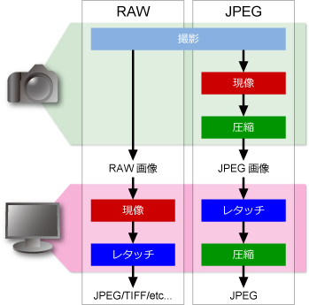 RAW画像とJPEG画像には、以下のような長所と短所があります。