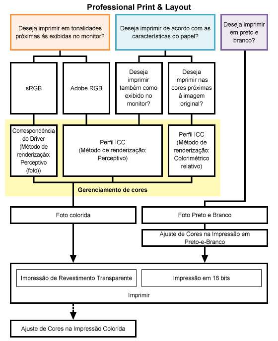Um modo de cor diferente é fornecido para cada objetivo. Você pode imprimir em alta qualidade mais facilmente apenas selecionando um modo de cor de acordo com o objetivo.