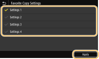 Zaškrtněte políčko pro všechna nastavení, která chcete mít na obrazovce Domů (Home), a vyberte možnost <Použít (Apply)>.