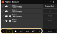 Často používaná místa určení pro fax nebo skenování můžete uložit do adresáře a v případě potřeby je snadno vybrat (Uložení míst určení do adresáře). Místa určení lze v seznamech adresáře vyhledávat podle abecedního pořádku nebo zadáním trojmístných čísel (čísla kódovaných voleb). Místa určení můžete také zadat rychleji pomocí následujících funkcí.