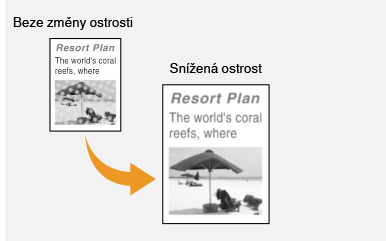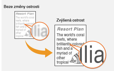 Umožňuje upravit ostrost obrazu. Ostrost zvyšte, chcete-li zostřit rozmazaný text a linky, případně snižte, chcete-li zlepšit vzhled fotografií v časopise. Nastavení ostrosti