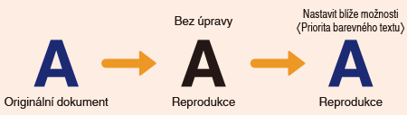 Můžete provést takové nastavení, aby se černý nebo téměř černý text reprodukoval barvou, která se velice blíží barevně naskenovanému originálu.