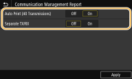Výsledek komunikacePokud dojde k chybě při přenosu e-mailu nebo i-faxu nebo ukládání do sdílené složky nebo na server FTP, kód chyby nebude na hlášení uveden. Chcete-li zkontrolovat kód chyby, vytiskněte hlášení správy komunikace. Hlášení správy komunikace