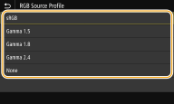 Nastavení této položky je nedostupné, pokud je možnost <Zdrojový profil RGB (RGB Source Profile)> nastavena na hodnotu <Žádné (None)>.