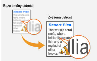 Umožňuje upravit ostrost obrazu. Ostrost zvyšte, chcete-li zostřit rozmazaný text a linky, případně snižte, chcete-li zlepšit vzhled fotografií v časopise.