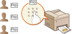 Du kan styre adgangen til maskinen ved hjælp af flere id'er for flere brugere eller grupper. Hvis en bruger forsøger at bruge maskinen, når Afdelings-id er aktiveret, vises en login-skærm, hvor brugeren skal angive et korrekt Afdelings-id og en korrekt pinkode for at bruge maskinen. Når administration af Afdelings-id er aktiveret, registreres anvendelsen af funktioner som f.eks. udskrivning for hvert Afdelings-id. Hvis du vil konfigurere administration af Afdelings-id, skal du efter behov registrere Afdelings-id'er og derefter aktivere funktionen Administration af Afdelings-id. Flere indstillinger skal konfigureres på computeren, hvis du vil aktivere administration af Afdelings-id'er for handlinger udført fra en computer.