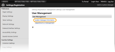 Du kan ændre de forskellige indstillinger for maskinen ved at bruge Fjern-UI. De fleste indstillinger kan også angives i maskinen, men nogle indstillinger kan kun angives ved at bruge Fjern-UI. I dette afsnit beskrives den grundlæggende proces for at ændre maskinens indstillinger ved hjælp af Fjern-UI.