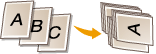 Ved kopiering af to eller flere kopier fra fremføreren kan du vælge sætsortering eller staksortering som rækkefølge for dit output. Vælg "Sætsortér" for at printe i fortløbende siderækkefølge. Vælg "Staksortér" for at printe sæt med hver side, som eksempel 10 ark med den første side, 10 ark med den anden side osv.