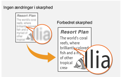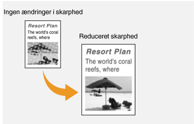 Du kan justere et billedes skarphed. Øg skarpheden for at gøre sløret tekst og slørede linjer mere skarpe, eller mindsk skarpheden for at forbedre udseendet af fotos fra et tidsskrift. Justering af skarphed