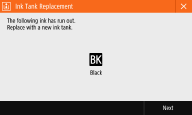 Vælg blækfarven, der skal udskiftes, og vælg <Udskift (Replace)>.