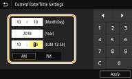Før indstilling af <Auto-nedlukningstid (Auto Shutdown Time)>Når indstillingen <Auto-nedlukningstid (Auto Shutdown Time)> aktiveres, kan maskinen lukke ned automatisk, selvom du betjener maskinen med Fjern-UI. Der kan opstå en fejl, især hvis maskinen lukker ned, mens der importeres data. Når du importerer data ved hjælp af Fjern-UI, skal du indstille <Auto-nedlukningstid (Auto Shutdown Time)> til <Fra (Off)> på forhånd.