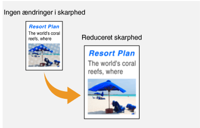 Du kan justere et billedes skarphed. Øg skarpheden for at gøre sløret tekst og slørede linjer mere skarpe, eller mindsk skarpheden for at forbedre udseendet af fotos fra et tidsskrift.