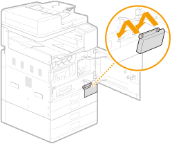 Ret  -mærket på hovedenheden og  -mærket på blækbeholderen ind efter hinanden, og skub derefter blækbeholderen ind, indtil den stopper.