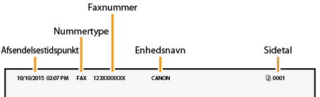Registrer faxnummeret og maskinens enhedsnavn. Disse oplysninger er trykt øverst på alle de sider, der sendes fra maskinen.
