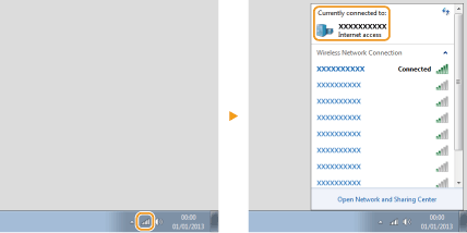 in der Taskleiste, um die SSID des verbundenen Wireless LAN-Routers anzuzeigen.