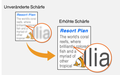 Sie können die Schärfe des kopierten Bildes anpassen. Erhöhen Sie die Schärfe, um verschwommenen Text und Linien schärfer darzustellen, oder senken Sie die Schärfe, um die Darstellung von Zeitschriftenfotos zu verbessern.